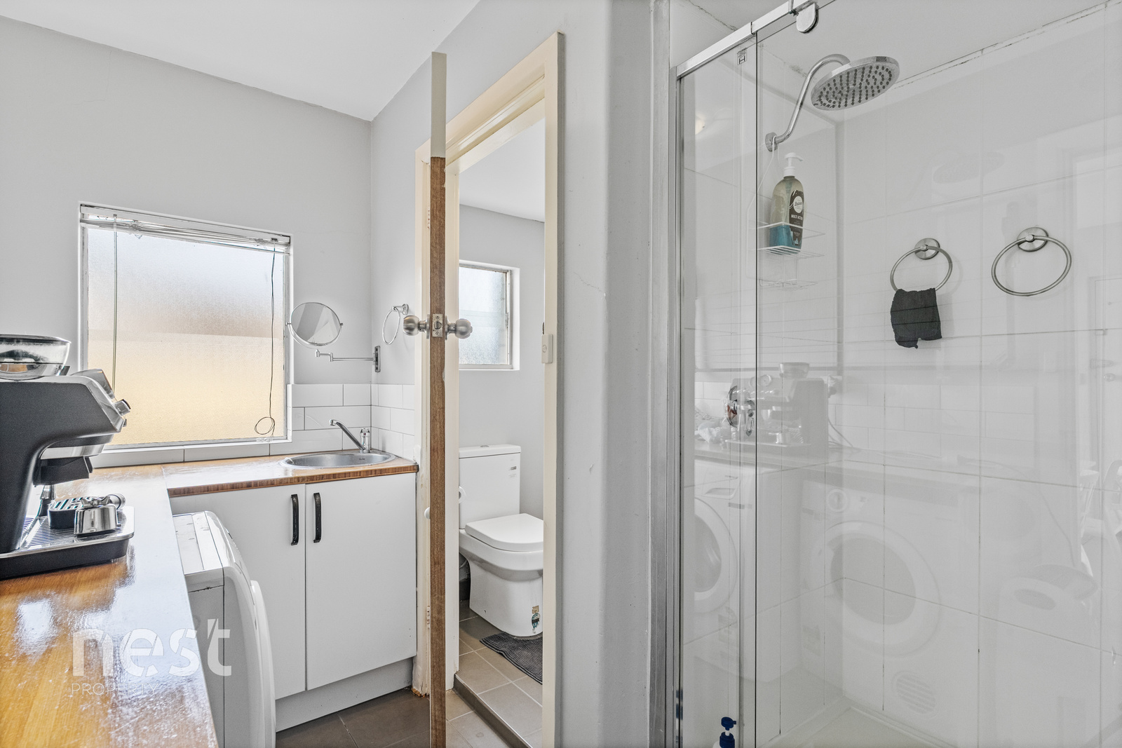 Convenience is paramount, with a combined laundry and bathroom facility, alongside a dedicated separate toilet.